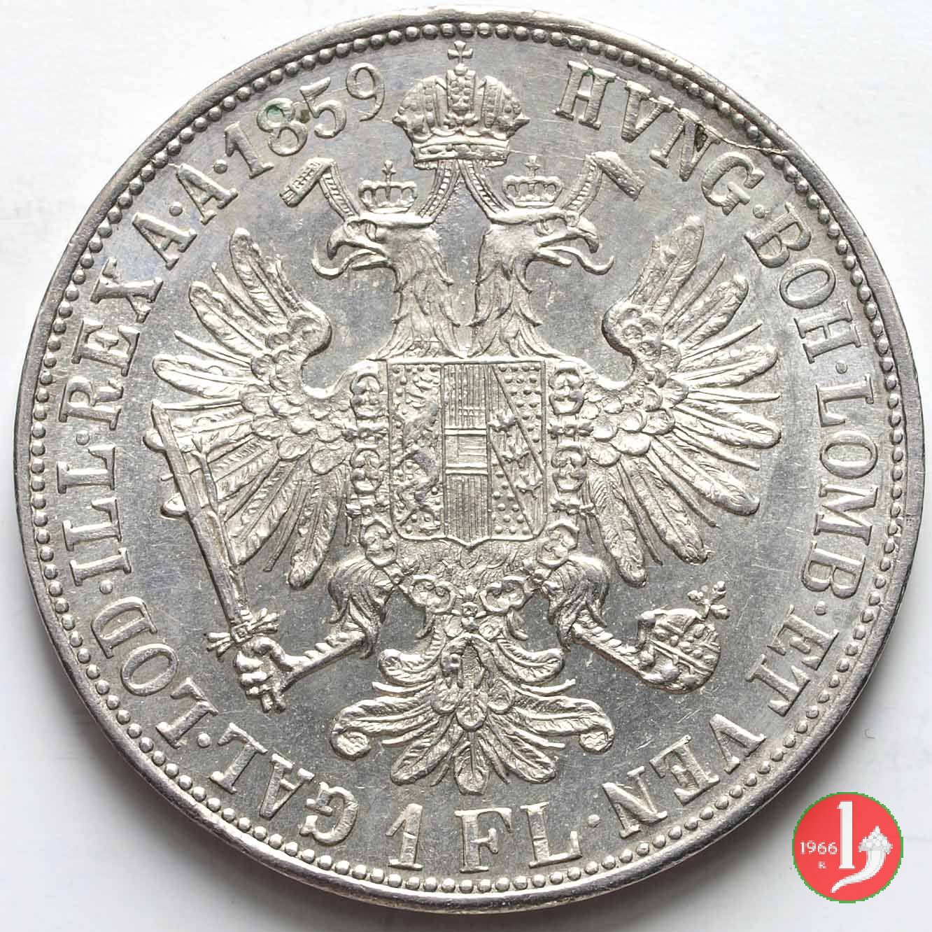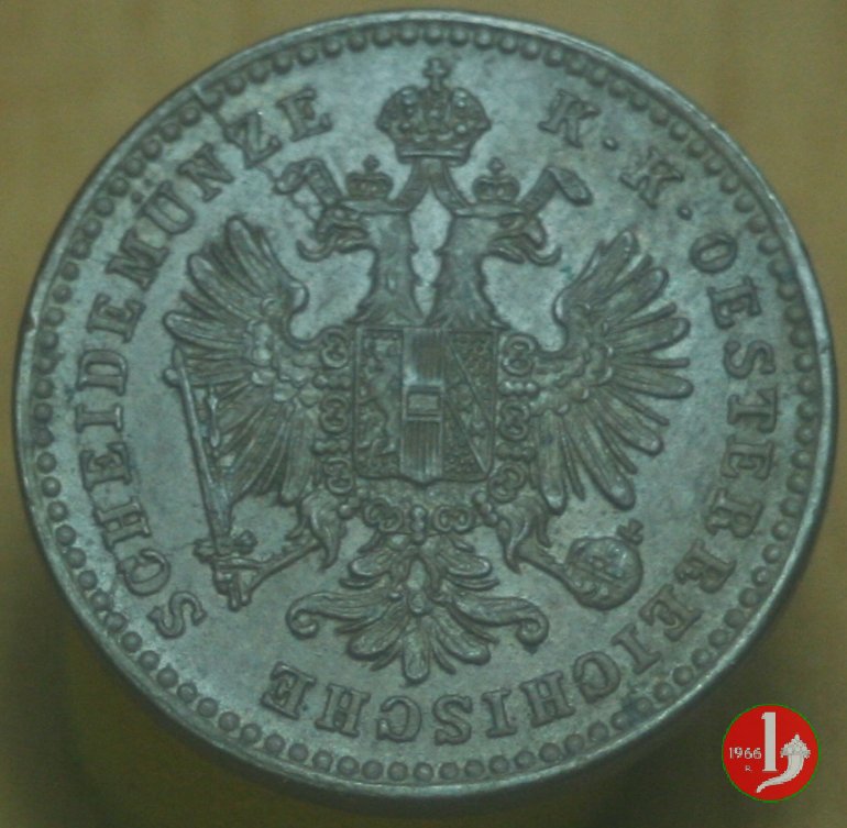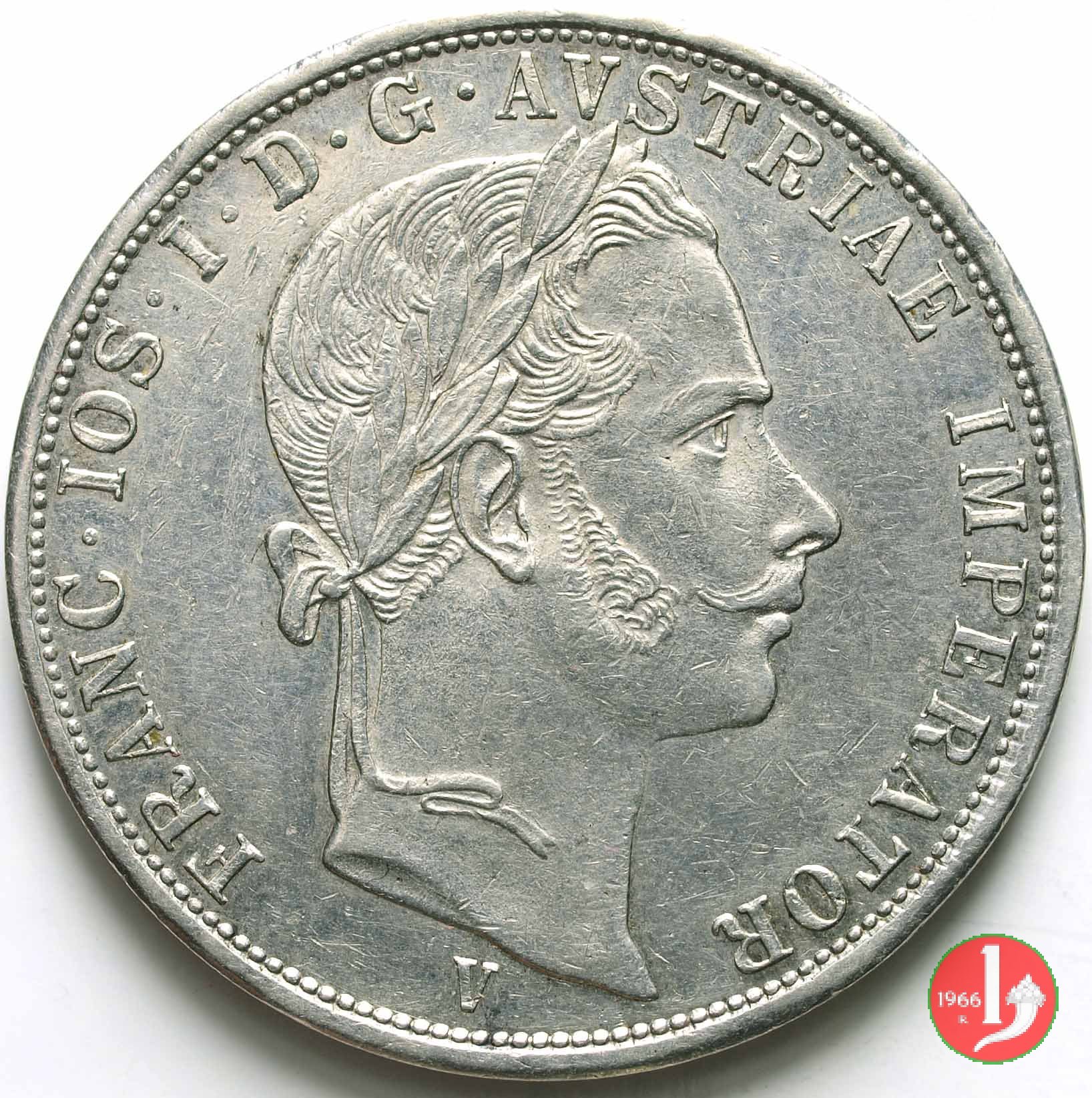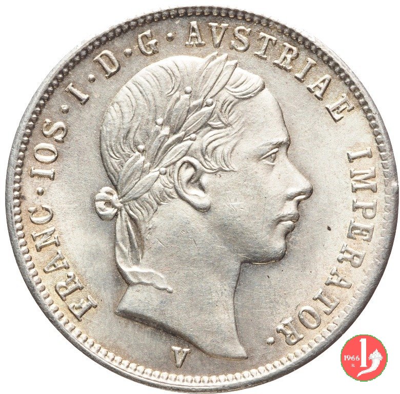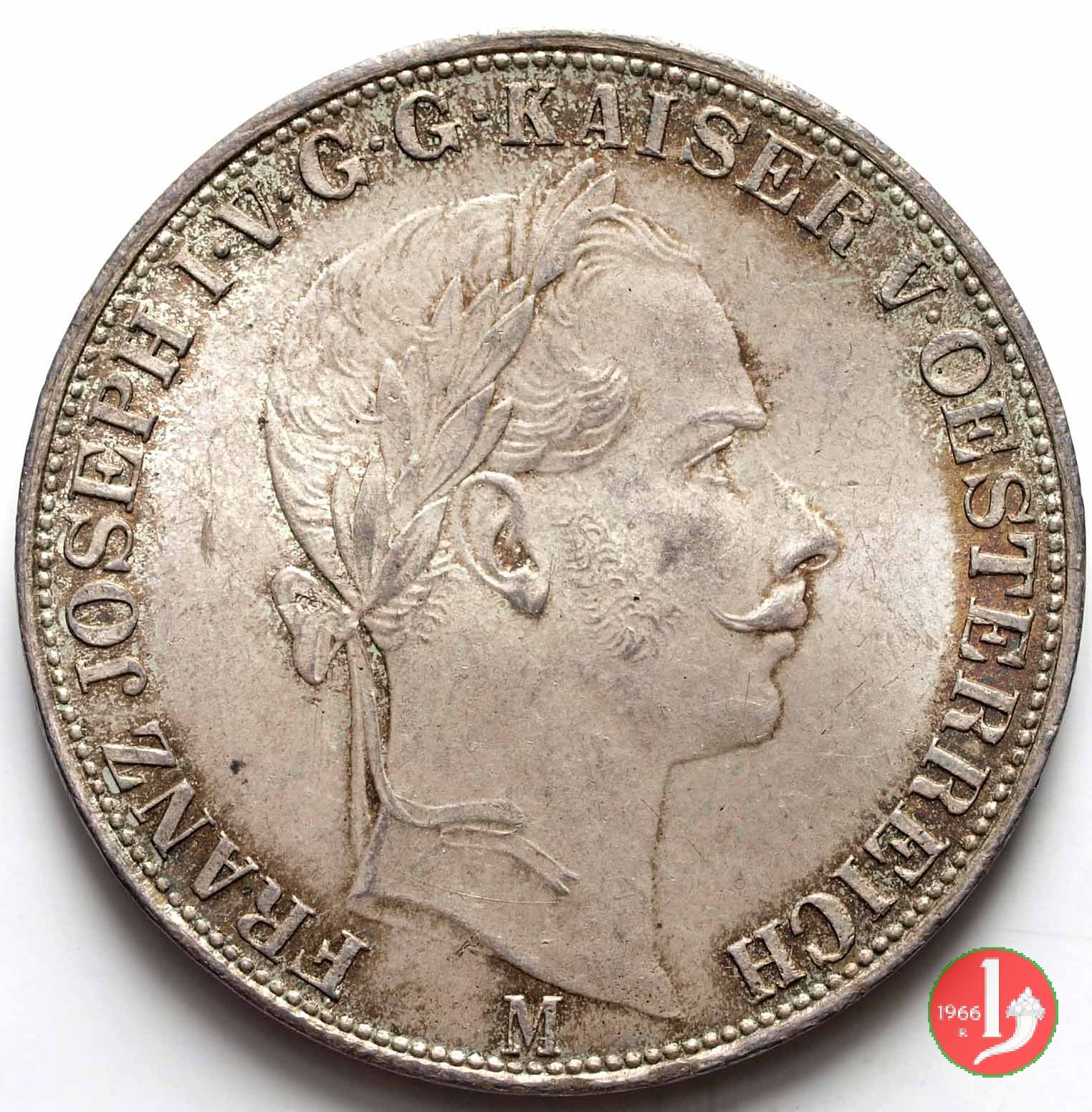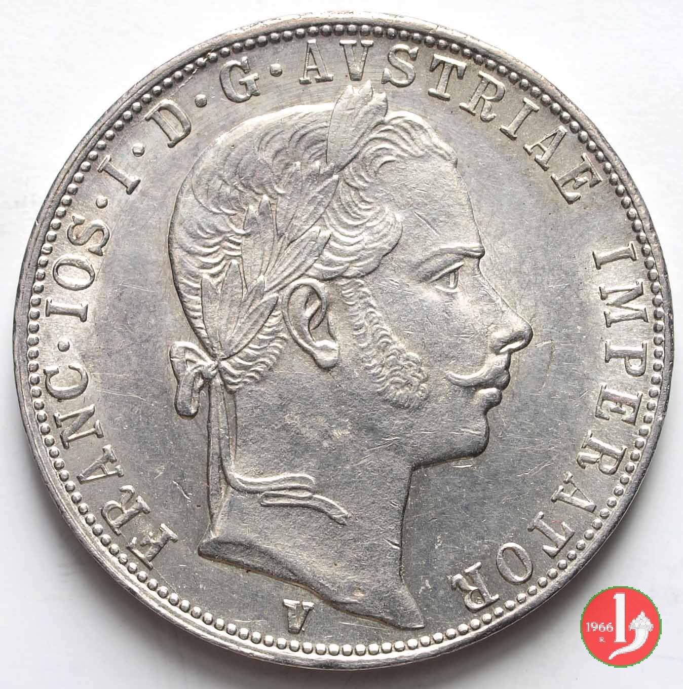Fiorino (2° tipo) Dritto: Testa laureata a destra. Intorno FRANC. IOS. I. D. G. AVSTRIAE IMPERATOR. Sotto segno di zecca (M per Milano, V per Venezia). Verso: Aquila bicipite sormontata da corona imperiale e scudo austriaco. Intorno HVNG. BOH. LOMB. ET VEN. GAL. LOD. ILL. REX A. A. e millesimo. Sotto, il valore: 1 FL. | |