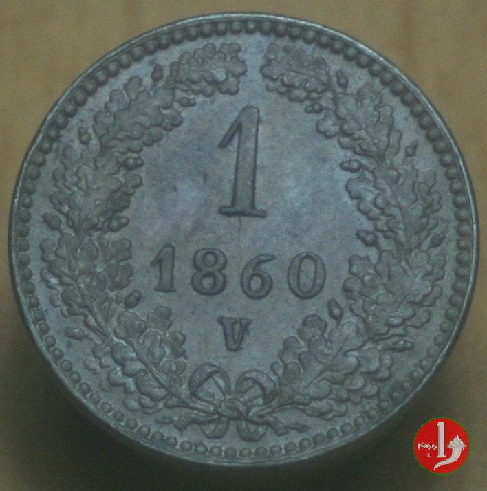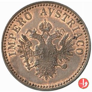 1 Kreuzer Dritto: Aquila bicipite dell'Impero Austriaco sormontata da corona imperiale e caricata con stemma austriaco. Intorno K • K • OESTERREICHISCHE SCHEIDEMÜNZE. Verso: Corona formata da due rami di quercia incrociati e legati da un nastro in basso. All'interno della corona indicazione del valore (1), millesimo e segno di zecca (V per Venezia e M per Milano) su tre righe. | |