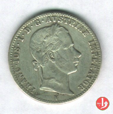 1/4 di Fiorino Dritto: Testa laureata a destra. Intorno FRANC • IOS • I • D • G • AVSTRIAE IMPERATOR. Sotto segno di zecca (M per Milano, V per Venezia) Verso: Aquila bicipite sormontata da corona imperiale e con lo scudo austriaco. Intorno HVNG • BOH • LOMB • ET VEN • GAL • LOD • ILL • REX A • A • e millesimo. Sotto il valore: 1/4 FL | |