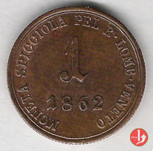 1 soldo Dritto: Aquila bicipite sormontata da corona imperiale e caricata con lo scudo austriaco. Sotto segno di zecca (A per Vienna, V per Venezia, B per Kremnitz) Verso: Indicazione del valore (1), in basso millesimo. Intorno MONETA SPICCIOLA PEL R • LOMB VENETO | |