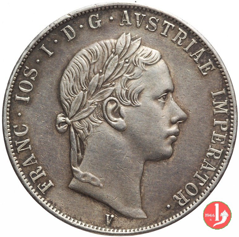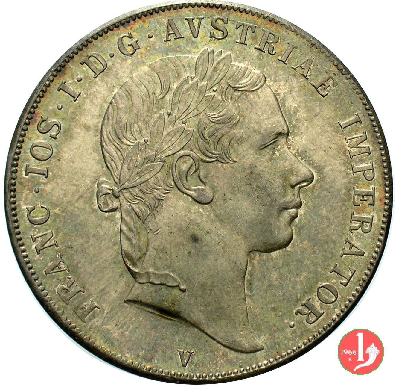 Fiorino (1° tipo) Dritto: Testa laureata a destra. Intorno FRANC. IOS. I. D. G. AVSTRIAE IMPERATOR. Sotto segno di zecca (M per Milano, V per Venezia) Verso: Aquila bicipite sormontata da corona imperiale e con lo scudo austriaco. Intorno HVNG. BOH. LOMB. ET VEN. GAL. LOD. ILL. REX A. A. e millesimo. Sotto il valore: 1 FL | |