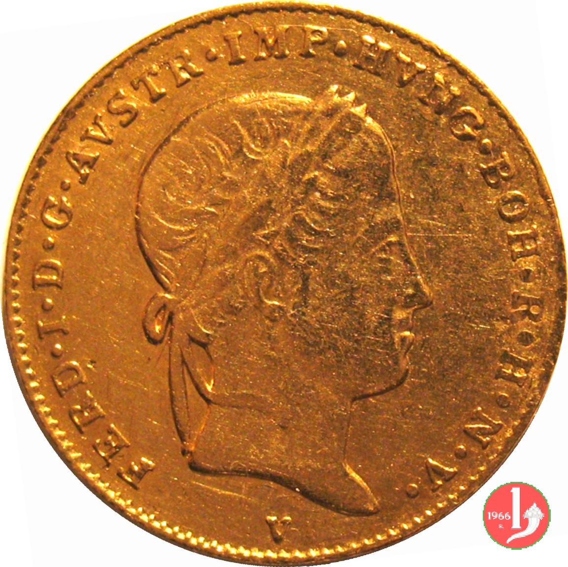 Ducato Dritto: Testa laureata, a destra. Intorno FERD I D G AVSTR IMP HUNG BOH R H N V • In basso il segno di zecca (V per Venezia). Verso: Aquila bicipite dell'Impero Austriaco sormontata da corona imperiale e caricata con lo scudo con i simboli araldici di Milano, Venezia e Austriaco. Intorno REX LOMB ET VEN DALM GAL LOD ILL A A e il millesimo seguito da • | |