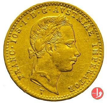 Ducato oro (2° tipo) Dritto: Testa laureata a destra. Intorno FRANC. IOS. I. D. G. AVSTRIAE IMPERATOR. Sotto segno di zecca (V per Venezia) Verso: Aquila bicipite sormontata da corona imperiale e con lo scudo austriaco. Intorno HVN. BOH. LOMB. ET VEN. GAL. LOD. IL. REX A. A. e millesimo. | |
