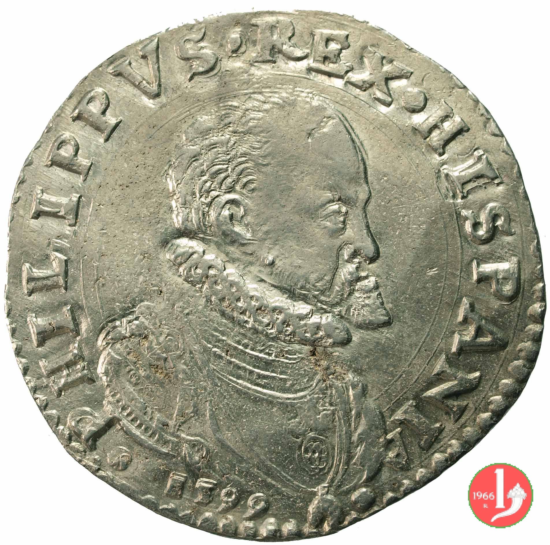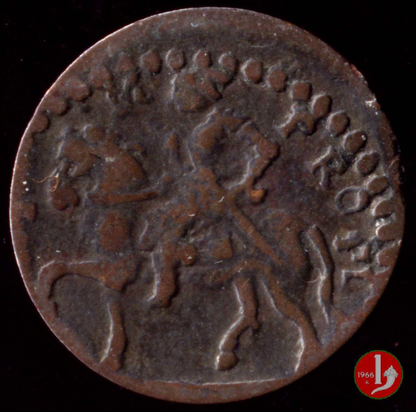 Verso: San Antonino a cavallo con stendardo di 3/4 a sinistra. Intorno, S • ANTONINVS MART • PROT • PLAC •. In esergo, iniziali dello zecchiere fra le quali il millesimo.