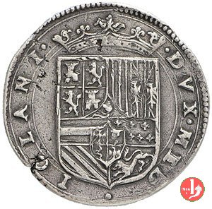 Verso: Scudo coronato inquartato dei tre gigli di Francia e del Biscione