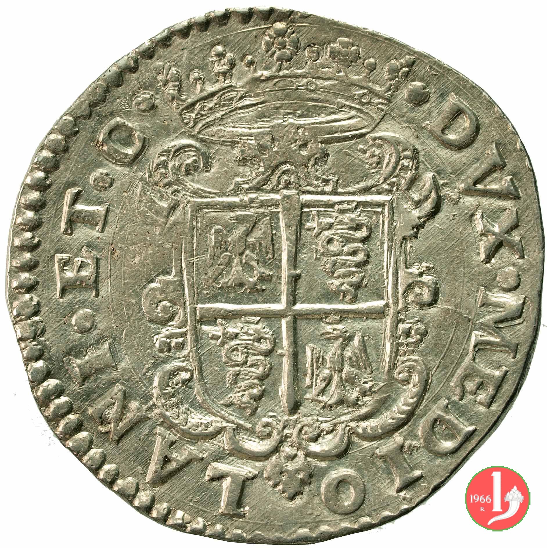 Verso: San Antonino a cavallo con stendardo su cui è raffigurato un dado verso destra. Intorno, • S : ANTO NINS • • M :: PL :. In esergo indicazione del millesimo ai cui lati troviamo la sigla dello zecchiere ( • L 1629 • X • ), sotto, una stelletta.