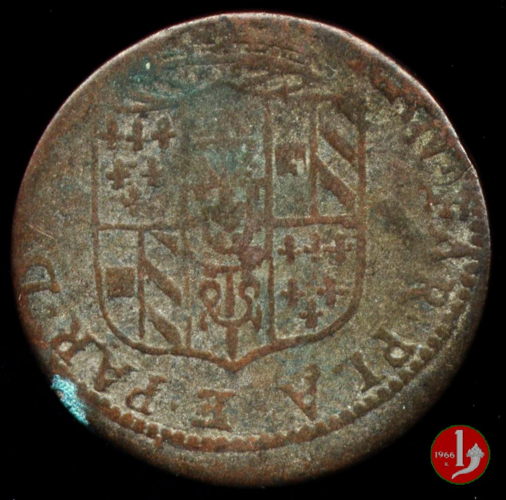 Dritto: Stemma di Ranuccio II Farnese sormontato da corona. Intorno,  • RAN • F • DVX VI •.