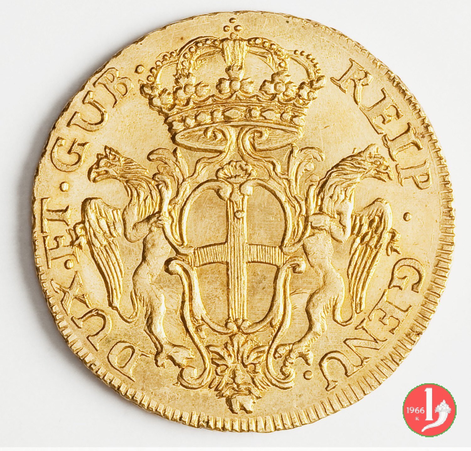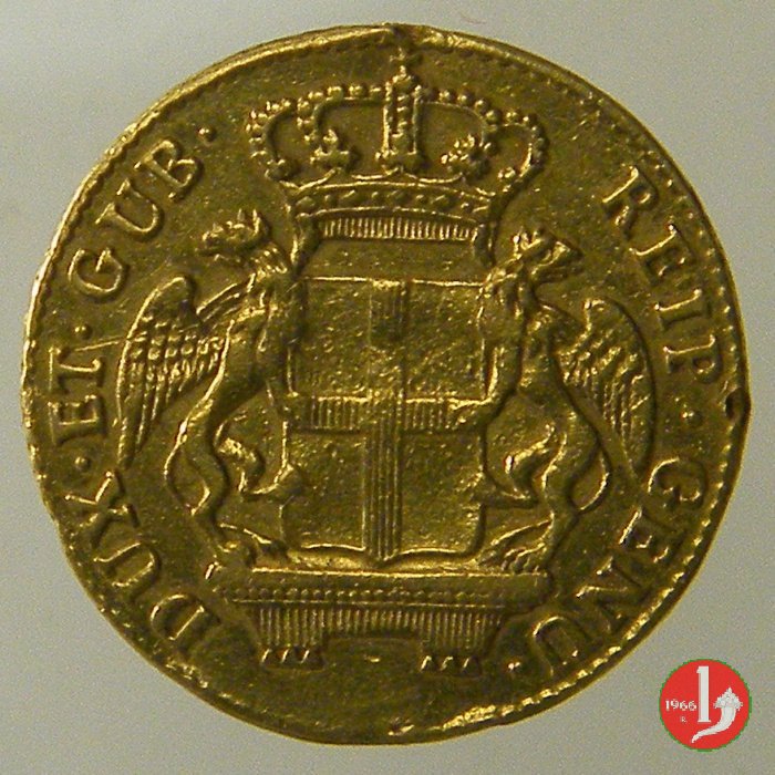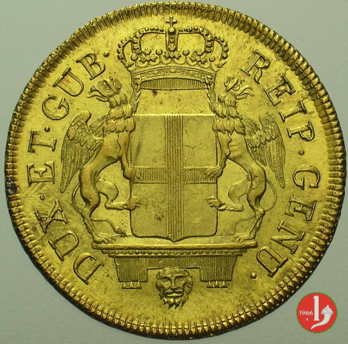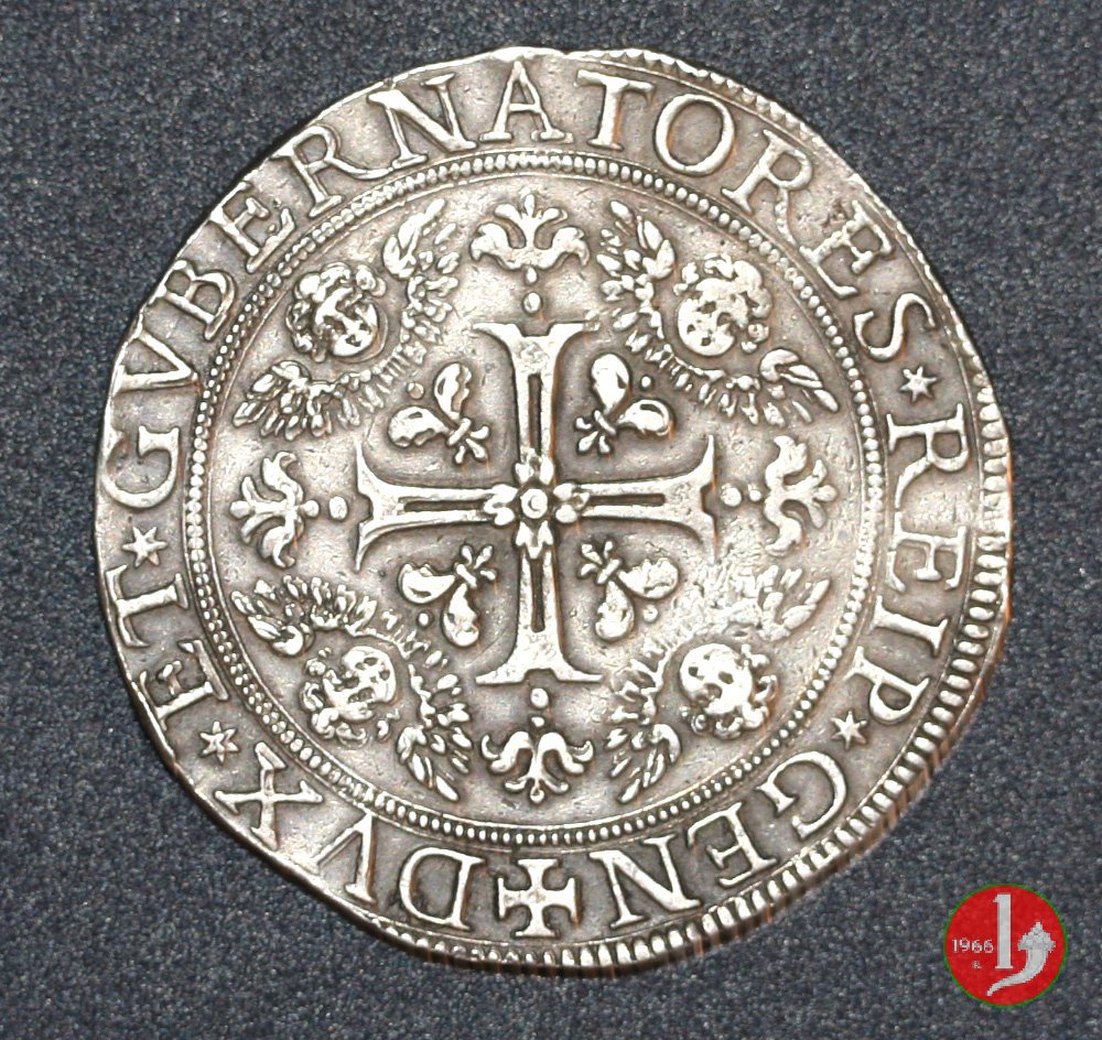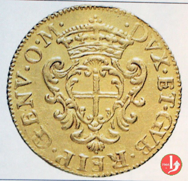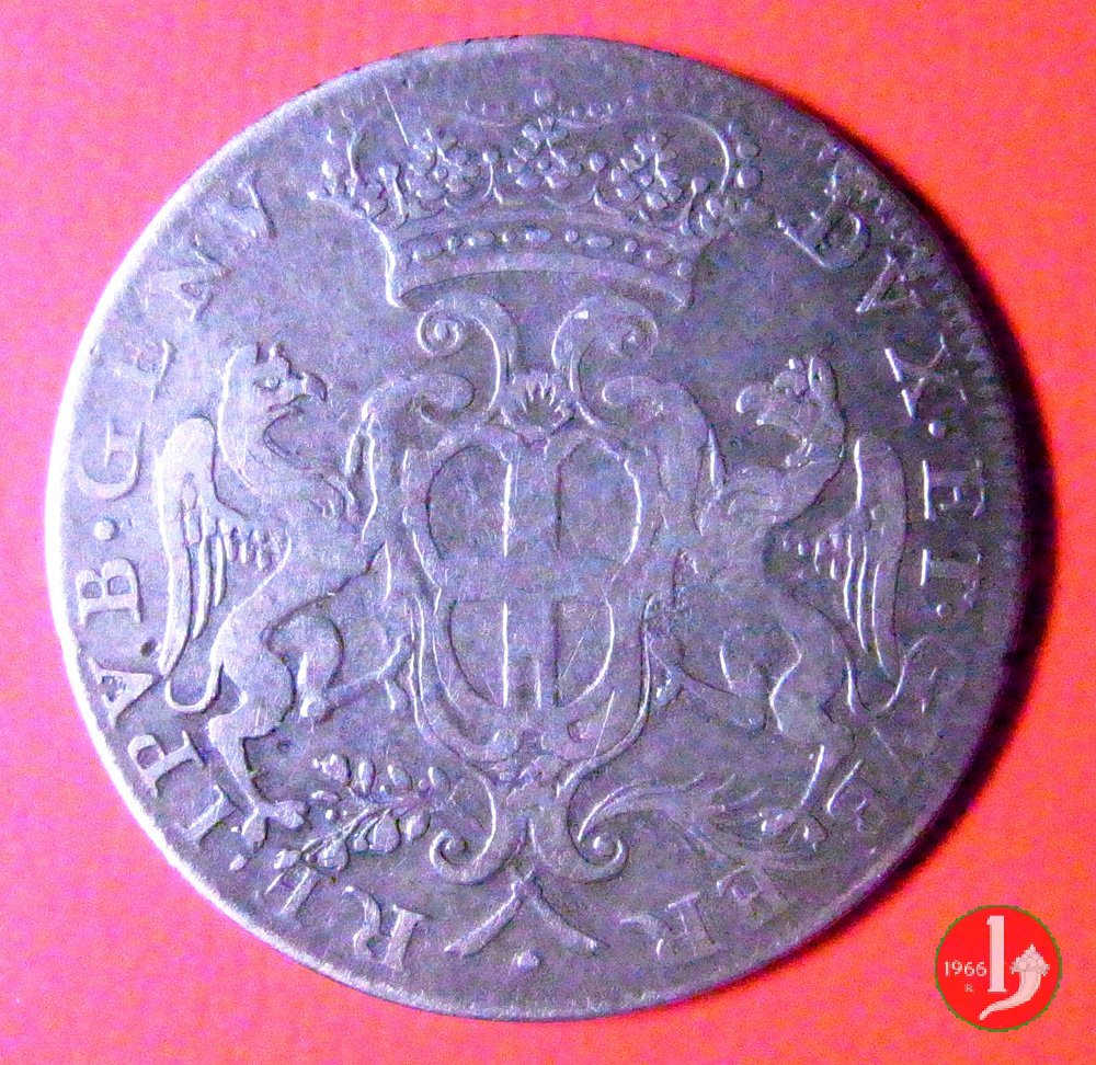 Verso: Stemma di Genova coronato. Intorno DUX • ET • GUB • REIP • GENU •.