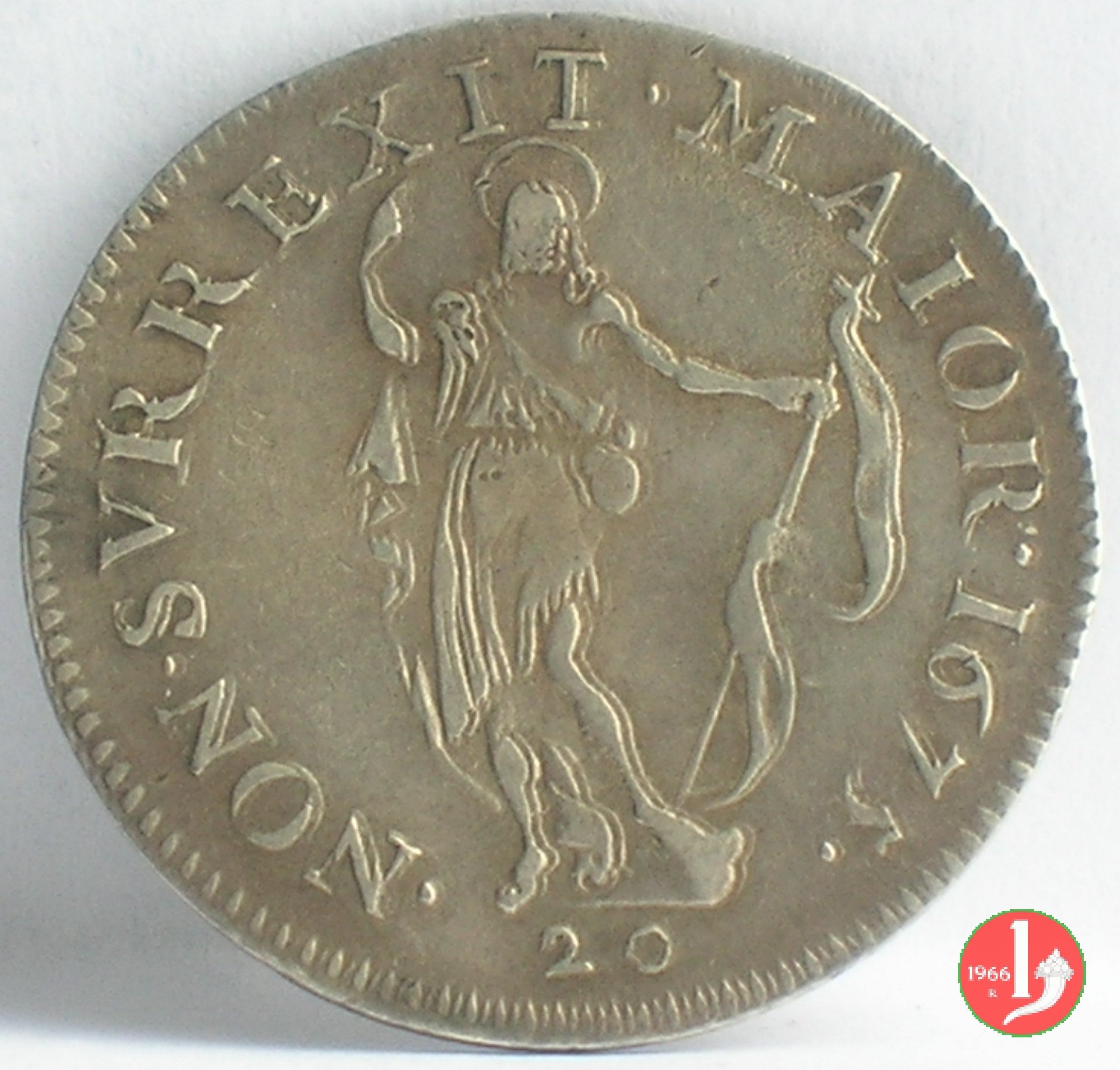 Al centro: " 1671 / denari / 12" su tre righe con intorno 6 stelle, in cerchio perlinato e lineare.