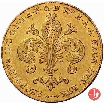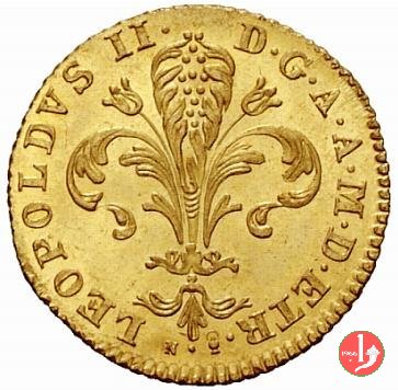 Dritto: (da sinistra) LEOP • II • D • G • P • R • H • ET B • A • A • M • D • ETR • testa nuda giovanile a destra; sotto l'incollatura G. N. e simbolo zecchiere Domenico Fiaschi (fiasca)