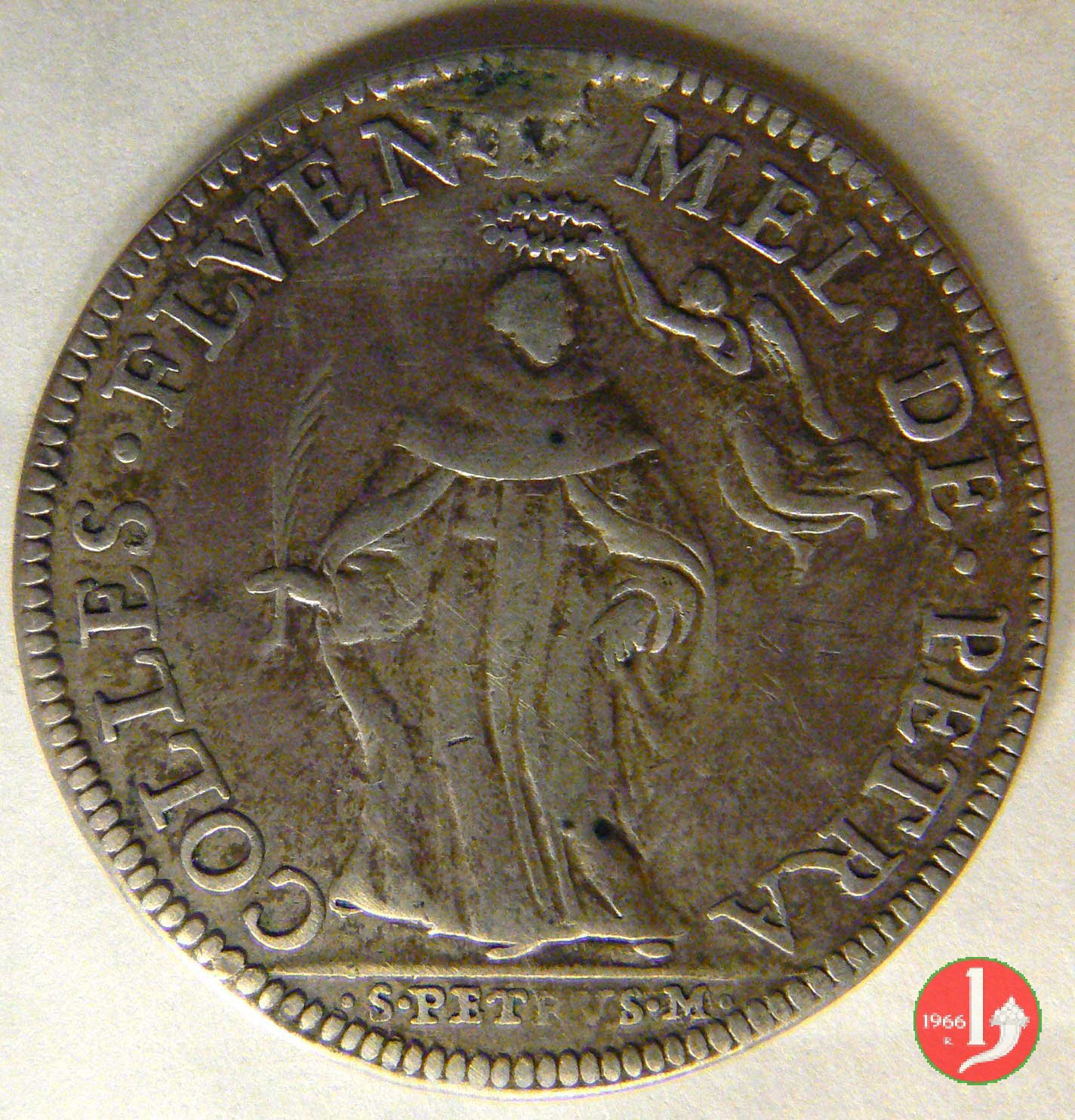 Verso: Figura dell'Abbondanza, in basso a destra armetta del Presidente delle Zecche mons. Farsetti. Millesimo all'esergo.