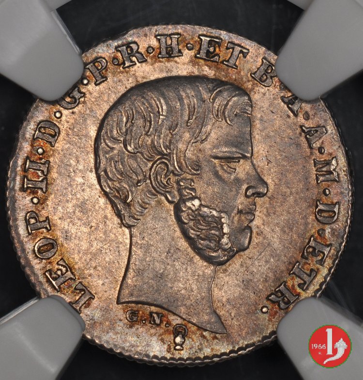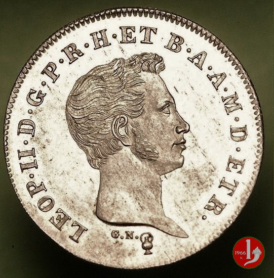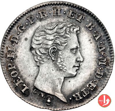 Dritto: (da sinistra) LEOP • II • A • D'A • GRAND • DI TOSC • testa nuda a destra senile;