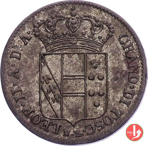 Dritto: (da sinistra) LEOP • II • A • D'A • GRAND • DI TOSC stemma rotondo partito e coronato;