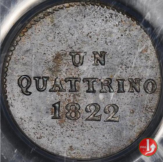 Verso: su tre righe UN QUATTRINO (anno in cifre)