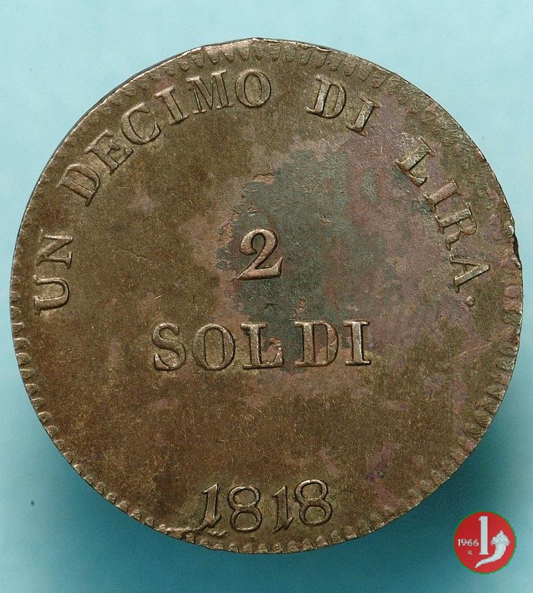 Verso: (da sinistra) UN DECIMO DI LIRA • campo, su due righe 2 SOLDI
