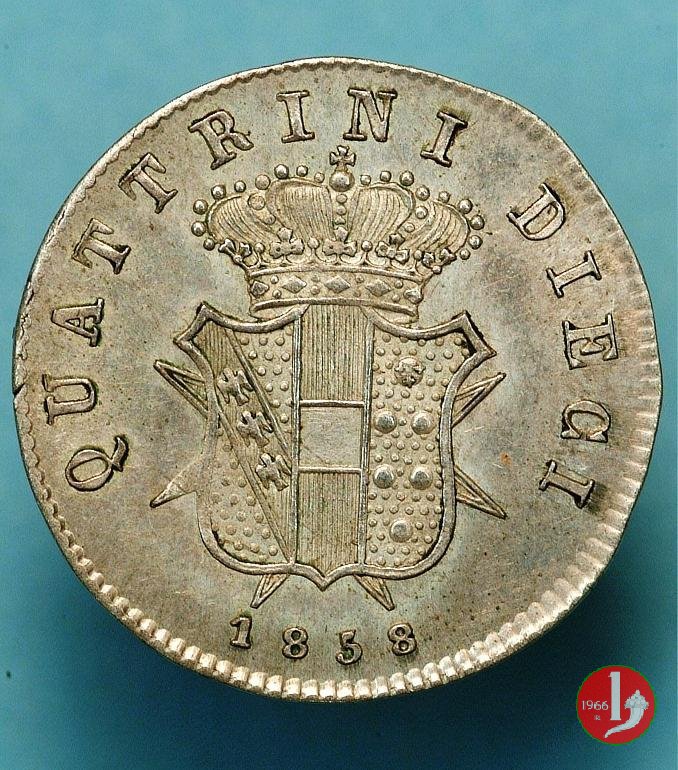 Verso: su tre righe 10 QUATTRINI (anno in cifre)
