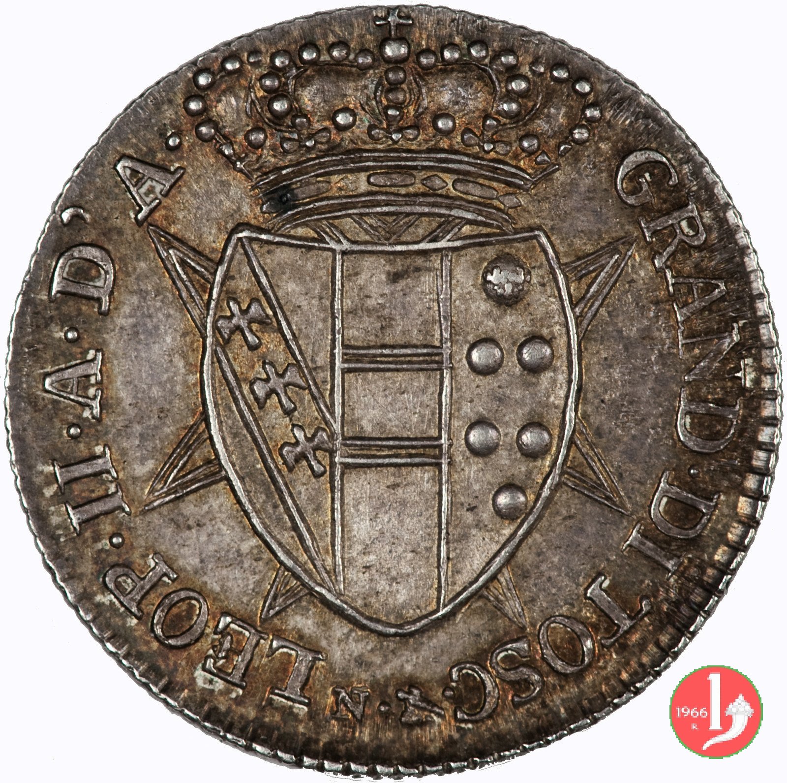Dritto: (da sinistra) LEOP • II. A • D'A • GRAND • DI TOSC stemma sannitico partito e coronato;