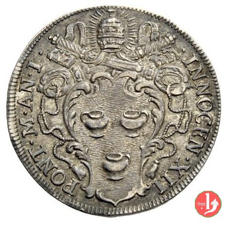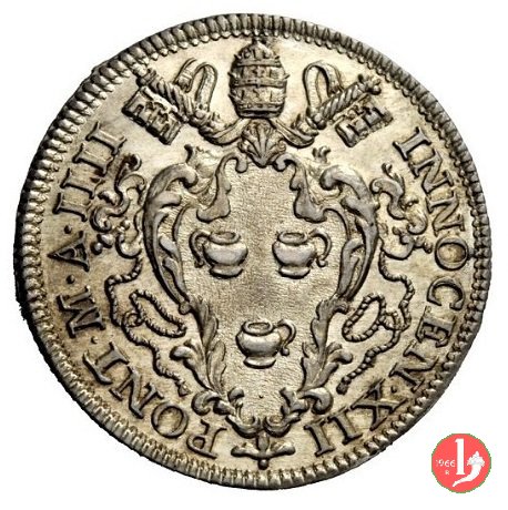 Legenda da DX: INNOCEN Triscele XII Triscele - Triscele PONT Triscele M Triscele A Triscele anno di pontificato Triscele