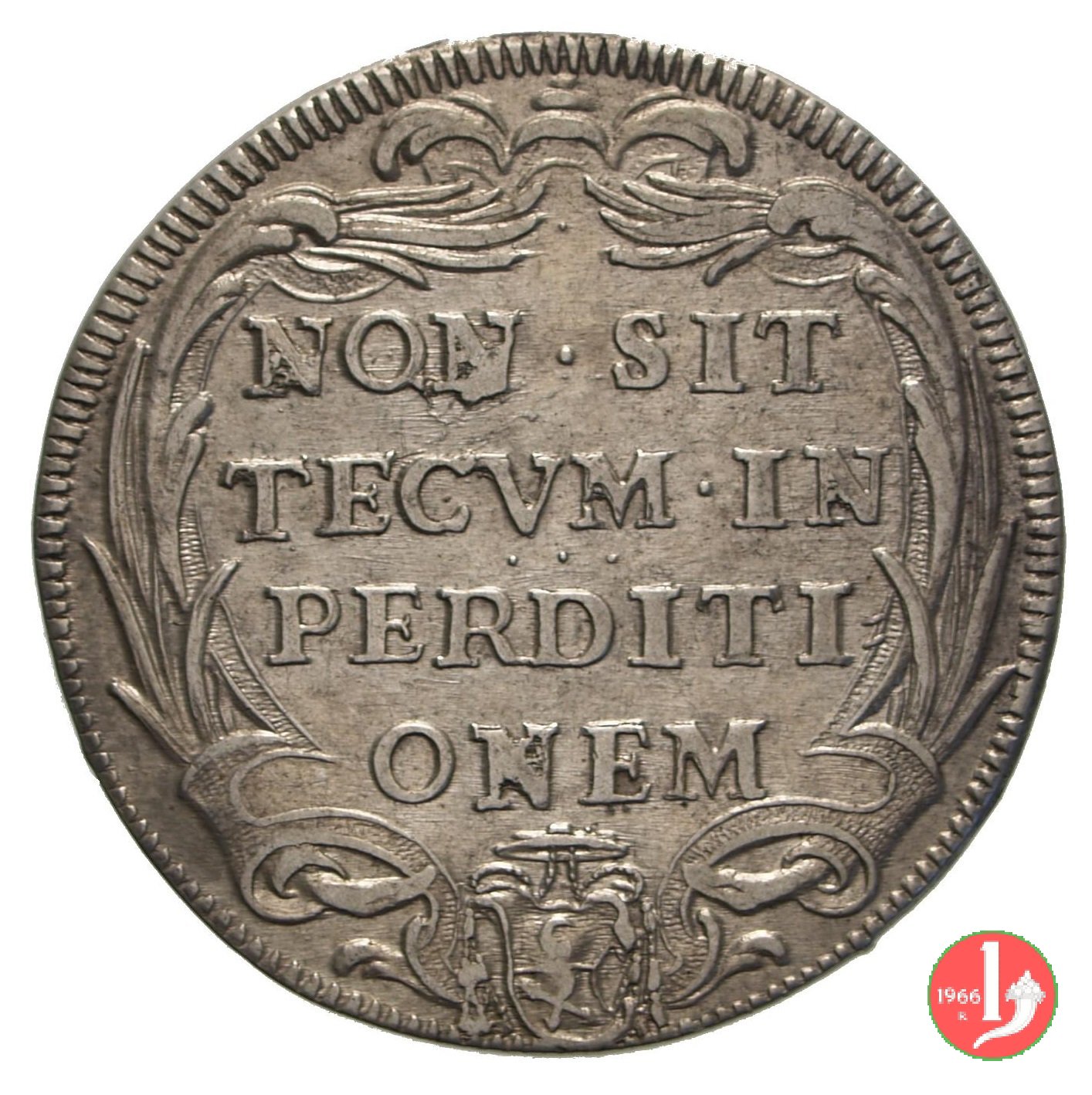 Verso: NON • SIT // TECVM • IN // PERDITI // ONEM in cartella chiusa in basso dall'armetta del Presidente delle Zecche mons. Farsetti.