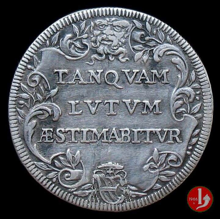 Verso: TANQVAM // LVTVM // AE in nessoSTIMABITVR in cartella chiusa in basso dall'armetta del Presidente delle Zecche mons. Corsini.