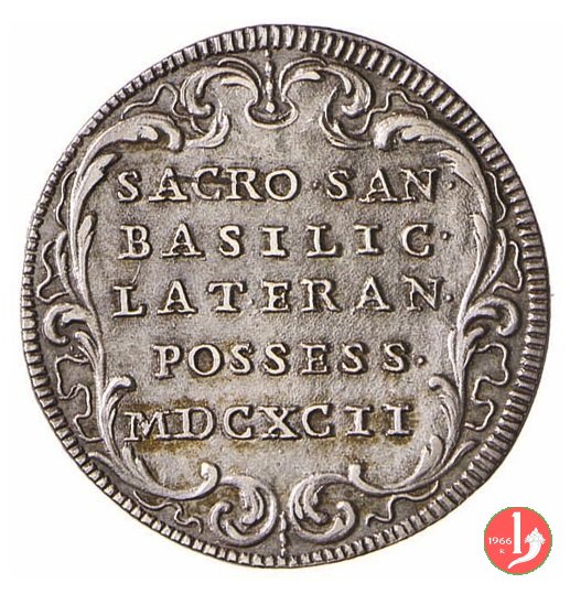 Verso: SACRO • SAN • // BASILIC • // LATERAN • // POSSESS • // millesimo, in cartella semiovale.