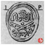 Dritto: Stemma trilobato; chiavi con impugnatura ovale, con cordoni.