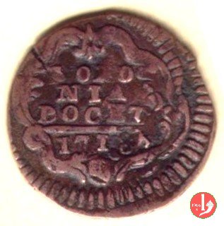 Dritto: Stemma poligonale con fogliami, chiavi con impugnatura ovale a due lobi con cordoni e fiocchi; legenda da DX: CLEMENS • XI • - • PONT • M • AN • I :