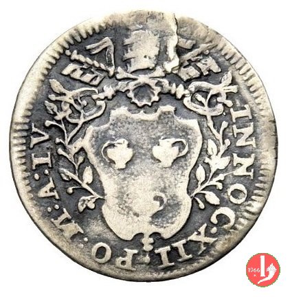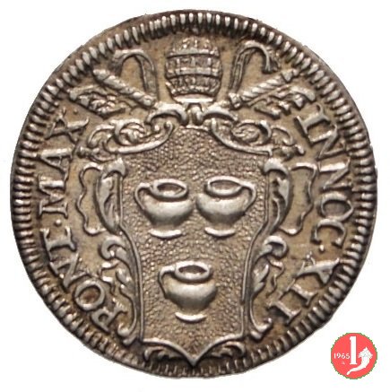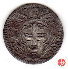Dritto: Stemma oblungo in cornice fra due rami d'alloro, chiavi con impugnatura a intagli, in parte coperte; legenda da DX: CLEMENS • XI - PONT • MAX • A • I