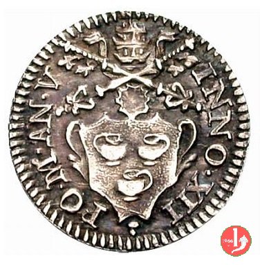 Dritto: Stemma trilobato tra due rami di palma; chiavi con impugnatura ovale, con cordoni.