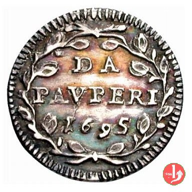Verso: F[OE]NERATVR / DOMINO • QVI / MISERETVR / PAVPERIS / • 1704 • in cinque righe curve entro cartella a targa.