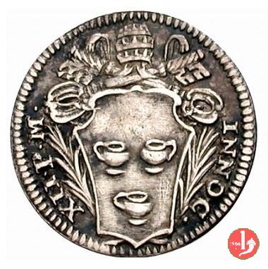 Dritto: Stemma a targa con due rami d'olivo in basso, chiavi con impugnatura a cuore, legenda da SX: CLEMENS * XI - PONT * M * A * V * ; in basso le iniziali dell'incisore.