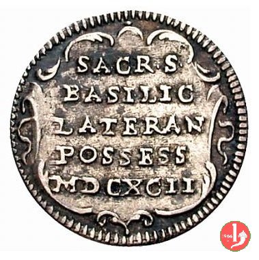 Dritto: Stemma oblungo tra due rami di palma, chiavi con impugnatura ovale, con cordoni.