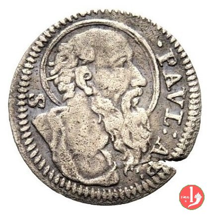 Verso: Figura di S. Paolo, all'esergo millesimo ai lati dell'armetta del Presidente delle Zecche mons. Corsini.