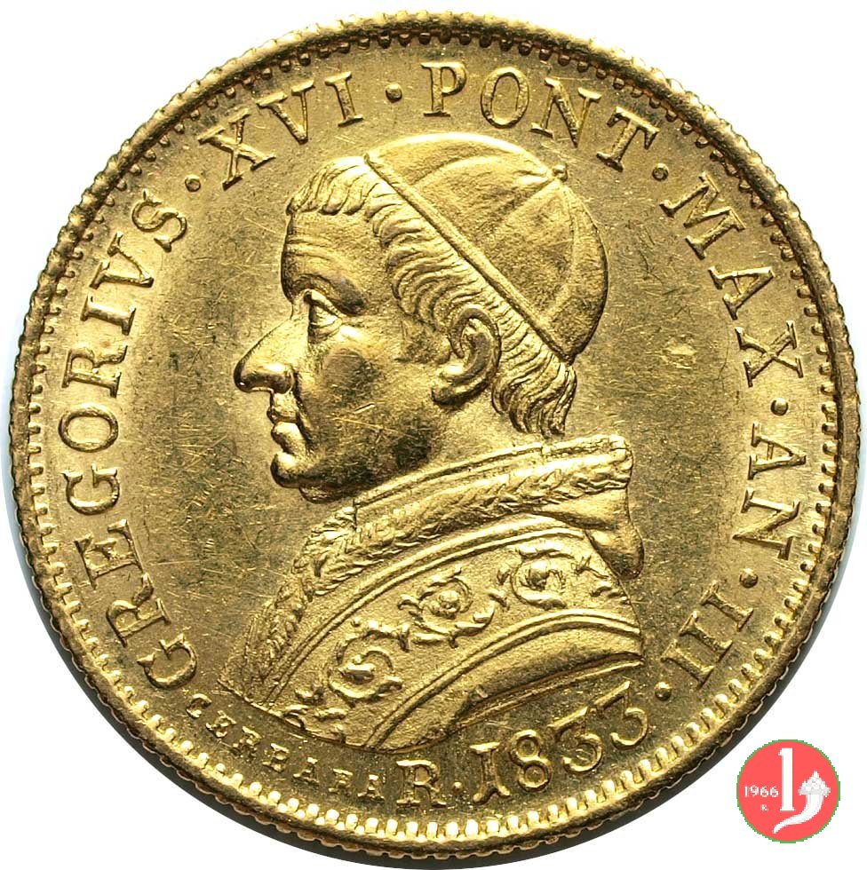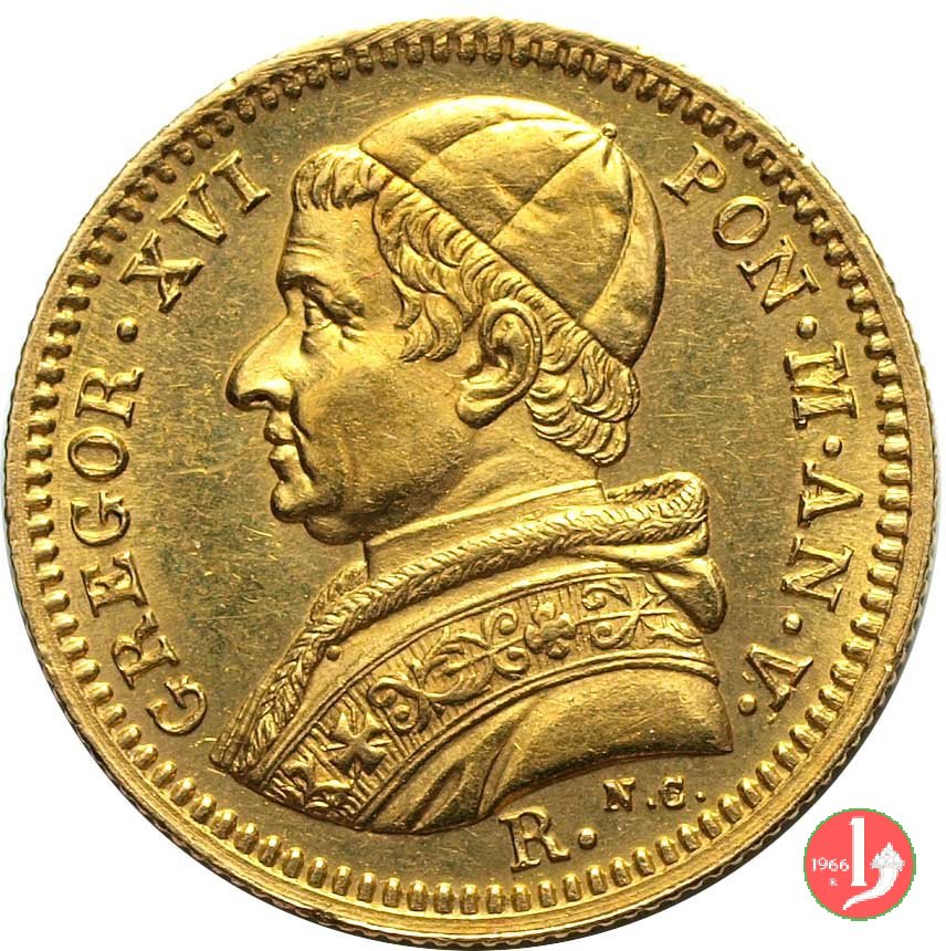 Dritto: GREGORIVS • XVI - PON • MAX • A • (anno di pontificato) busto a destra con zucchetto, mozzetta e stola; sotto, data e N • CERBARA(incisore).