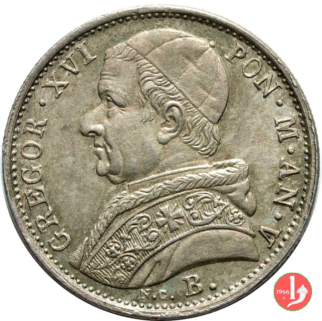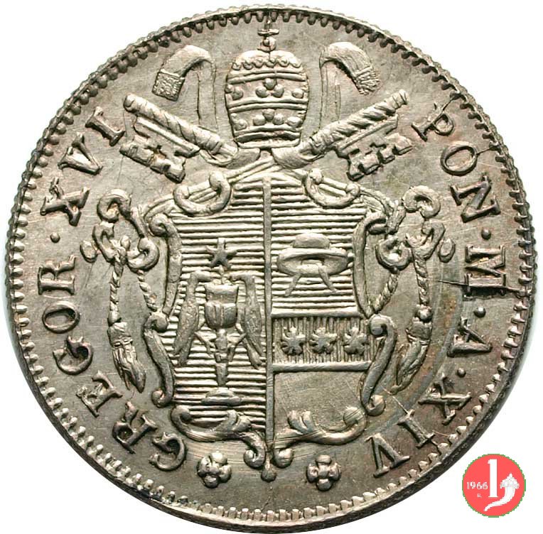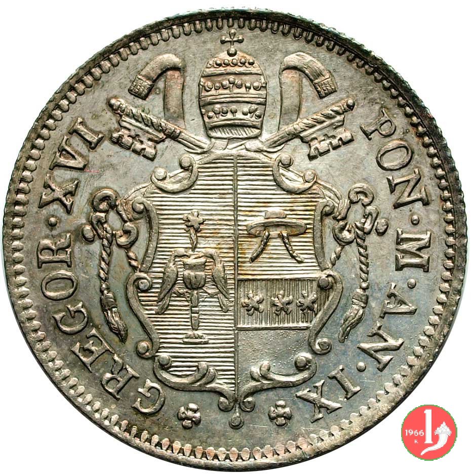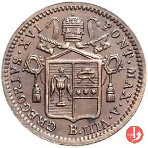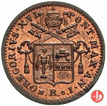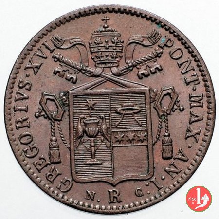 Dritto: Stemma a targa ornato e sormontato da tiara e chiavi; attorno: GREGORIVS • XVI - PONT • MAX • AN • I; sotto, il segno di zecca, tra le iniziali N. C.