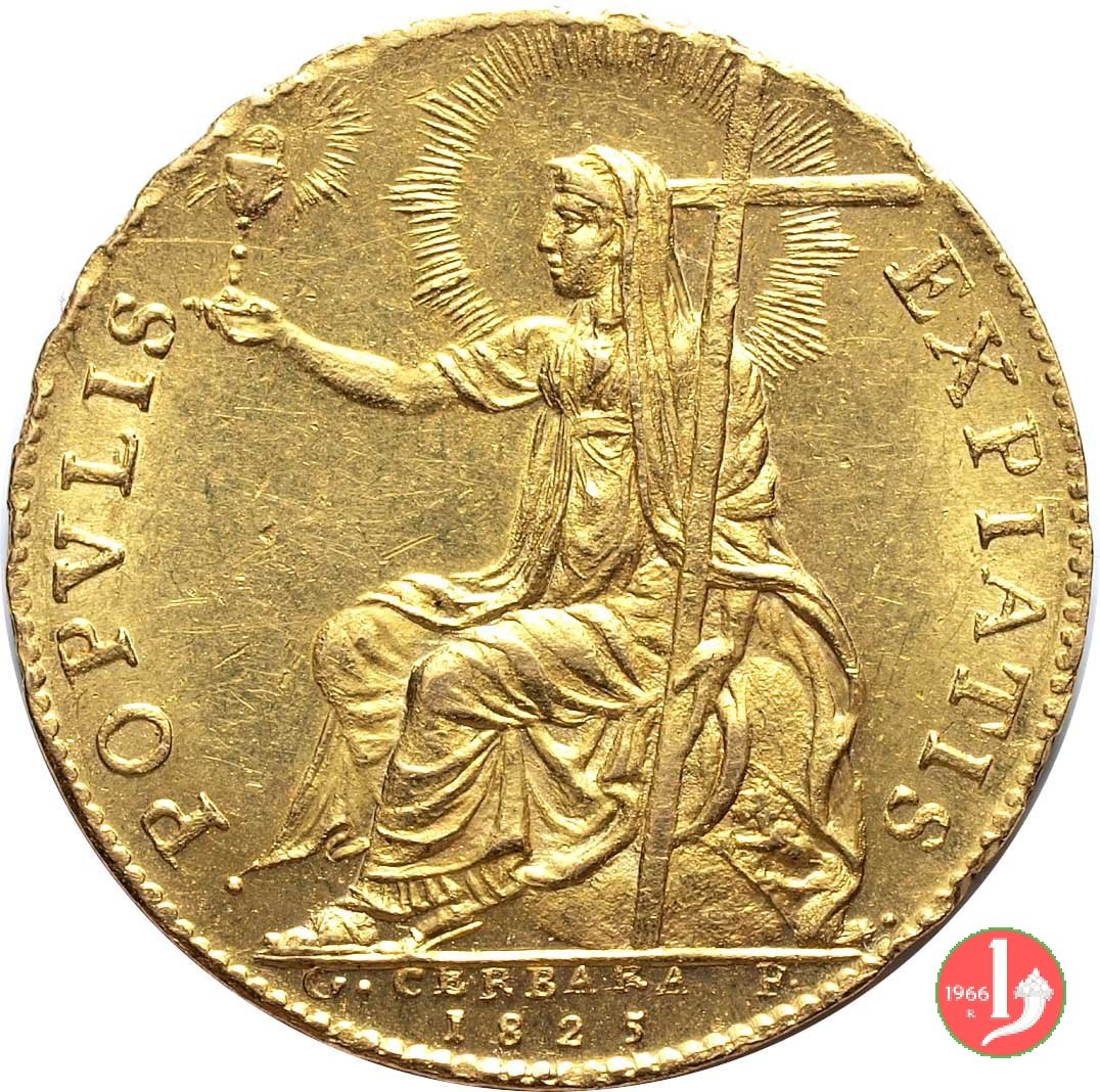 Verso: Figura femminile, allegoria della Chiesa Romana, seduta a sinistra su globo, reggente croce e calice. Intorno: POPVLIS - EXPIATIS •; in esergo, G • CERBARA • F • e millesimo (1825).