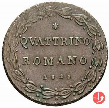 Verso: Entro corona d'alloro destrorsa, in tre righe: QUATTRINO ROMANO 1829, sormontato da stella.