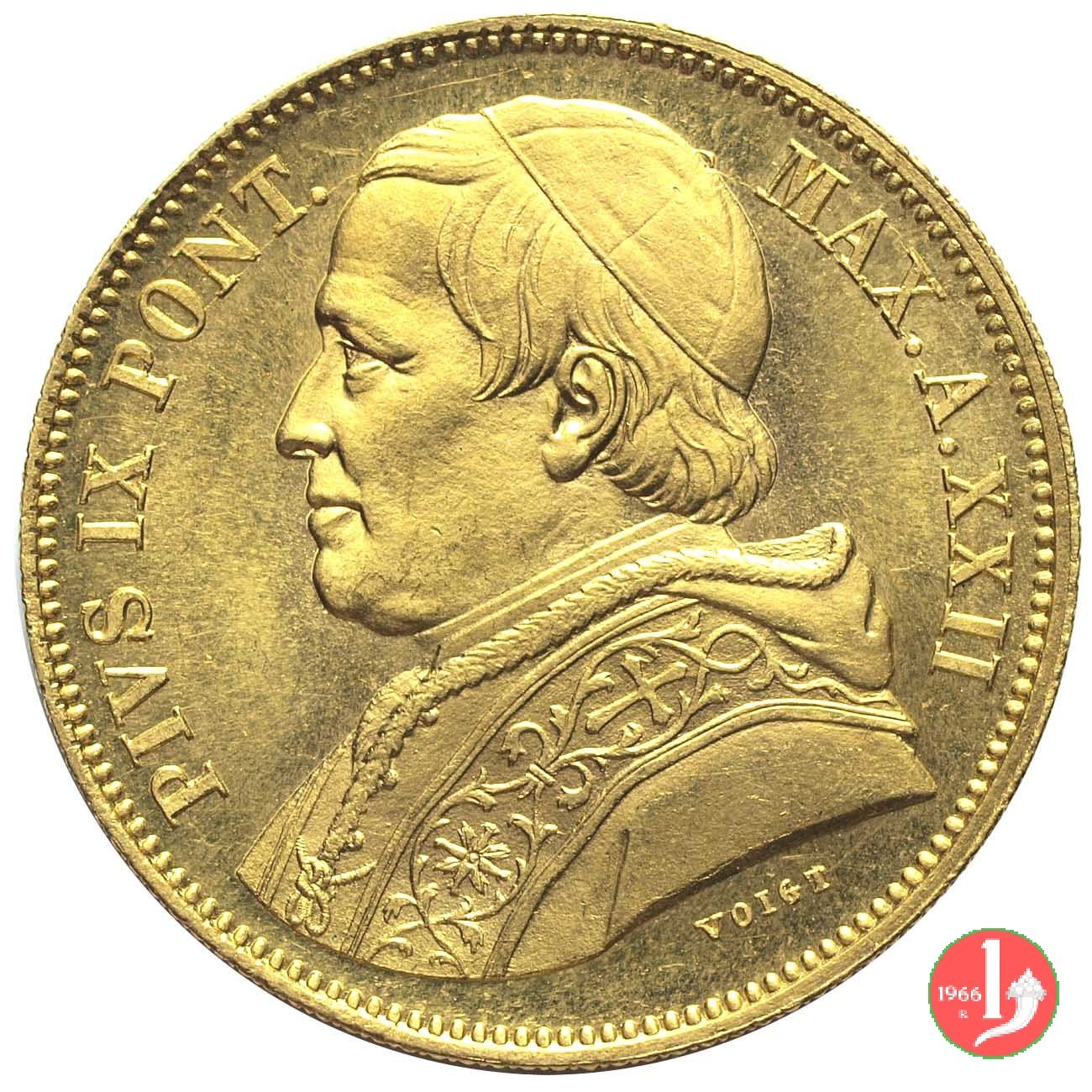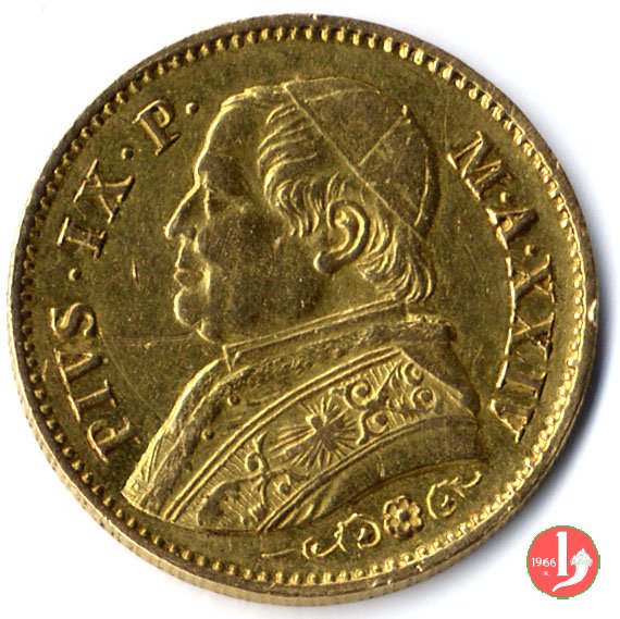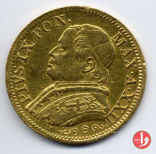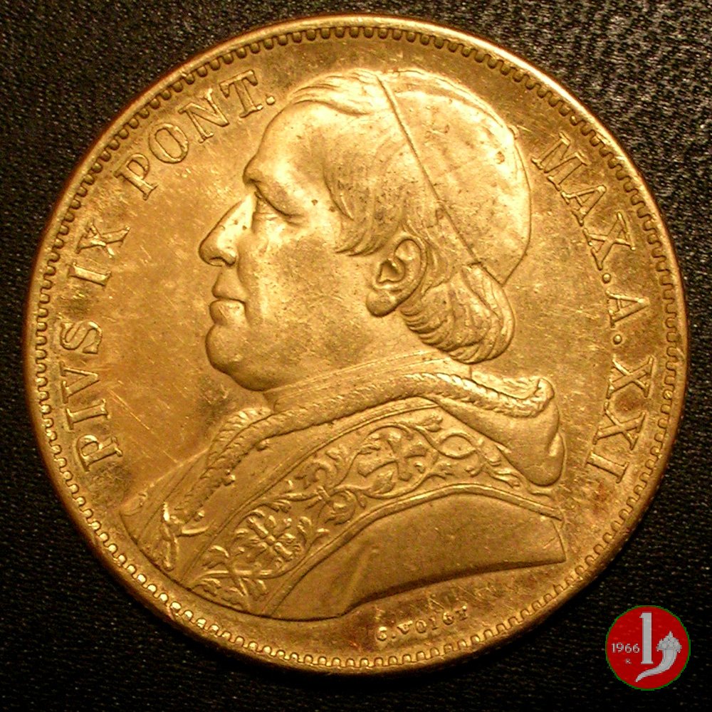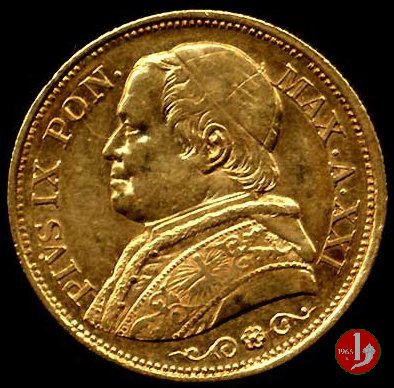 Pio IX (1846-1878) - Monetazione in Lire Pontificie 1866-1870 -> 5 lire d'oro