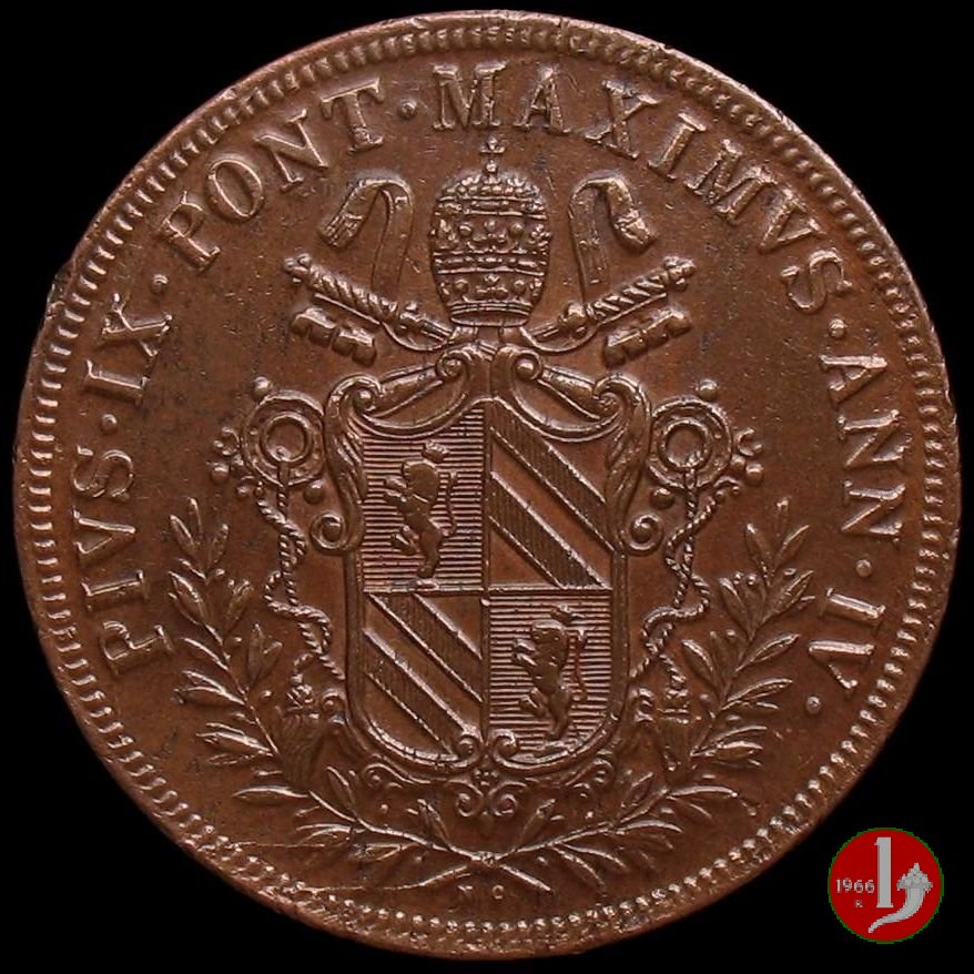 Dritto: Nel campo, busto a sinistra con zucchetta di Pio IX con sotto un fregio con una rosetta. Intorno PIVS IX PON • MAX • A • e anno di pontificato.