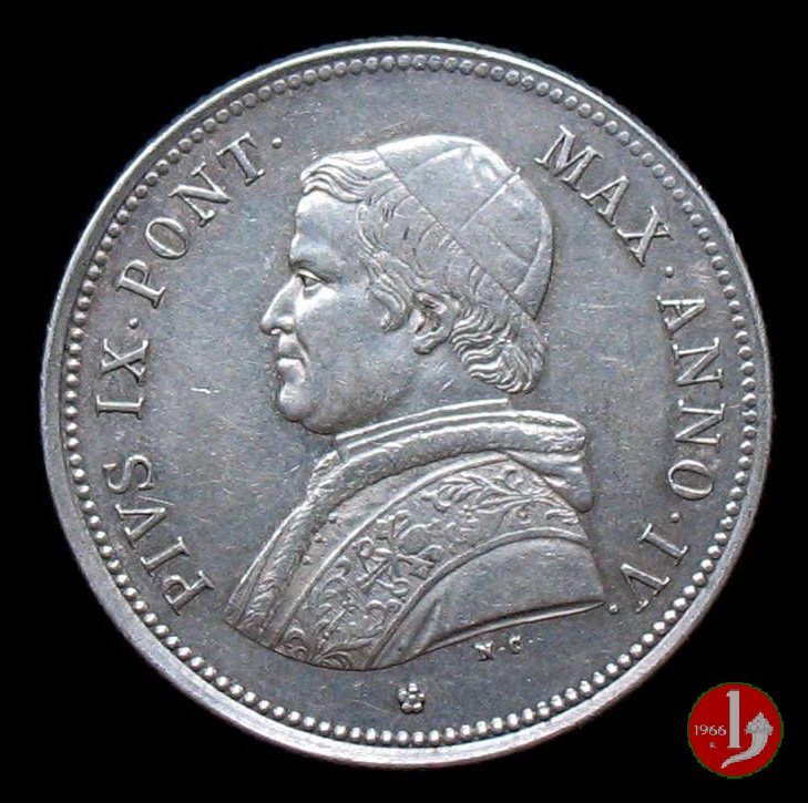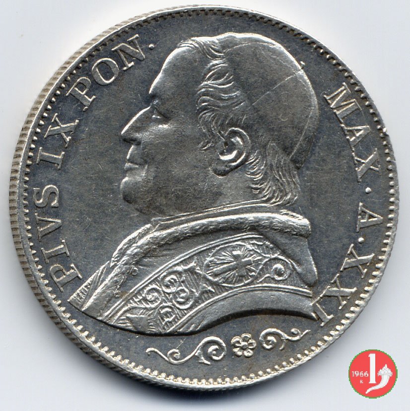 Pio IX (1846-1878) - Monetazione in Lire Pontificie 1866-1870 -> 5 lire d'argento