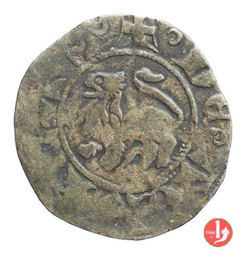 Verso: + • S • IOH • A NNES • B •, Il santo nimbato in piedi di fronte , in alto a sx fiordaliso sormontato da lambello.