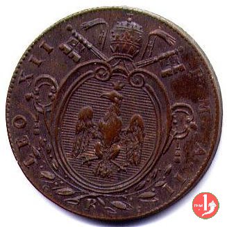 Dritto: Stemma ovale con bordura lineare in cornice sormontato da tiara e chiavi con impugnatura lineare e fiocchi; sotto, rami d'alloro. Intorno LEO XII P • M • A • e anno di pontificato. In basso segno di zecca (R per Roma e B per Bologna). Gli esemplari per Roma presentano anche le lettere G • C • indicazione dell'autore (Giuseppe Cerbara).