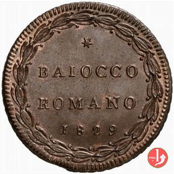 Verso: Entro corona d'alloro destrorsa, in tre righe: BAIOCCO ROMANO 1829, sormontato da stella.