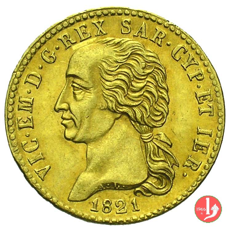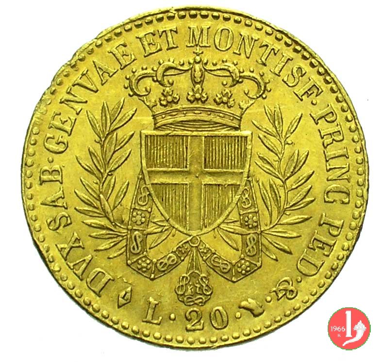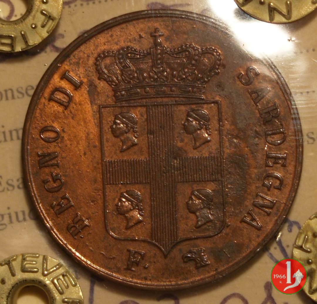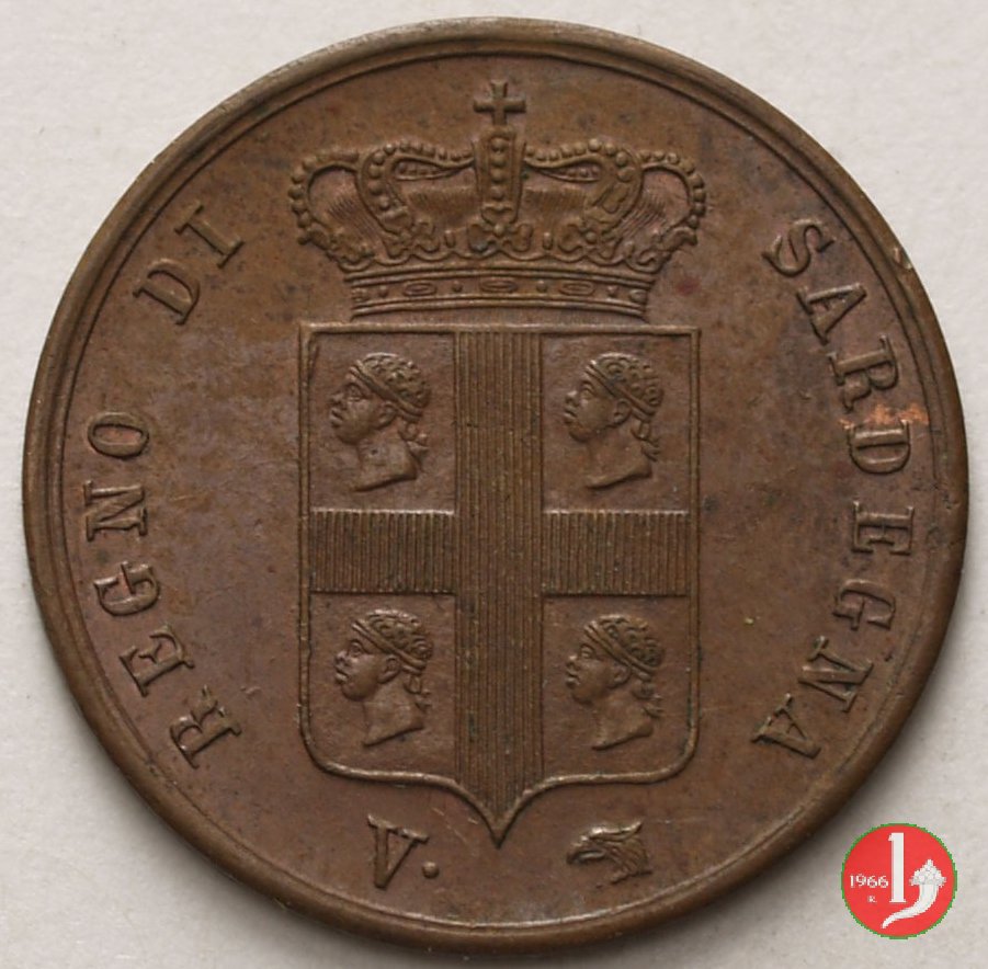 Dritto: Busto del re rivolto a destra, sotto la data, intorno VICT • AMED • D • G • REX • SARD •.