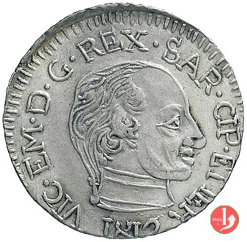 Dritto: Testa nuda del re rivolta a sinistra, con sotto il collo la data, intorno VIC • AM • D • G • REX • SARDINIAE •.