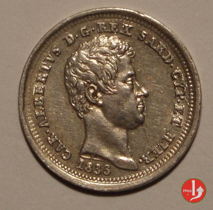 Dritto: Busto del Re volto a sinistra. Intorno VIC • EM • D • G • REX • SARD • CYP • ET • IER •. In basso, il millesimo. Sulla spalla del Re, indicazione dell'autore (A • LAVY).