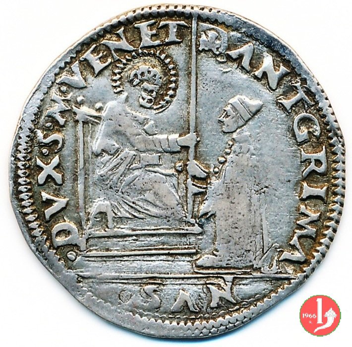 16 soldi Dritto: ANDREAS GRITI DVX S M VENET, S. Marco e il doge Verso: GLORIA TIBI SOLI, il Redentore seduto in trono, sotto iniziali del massaro | |