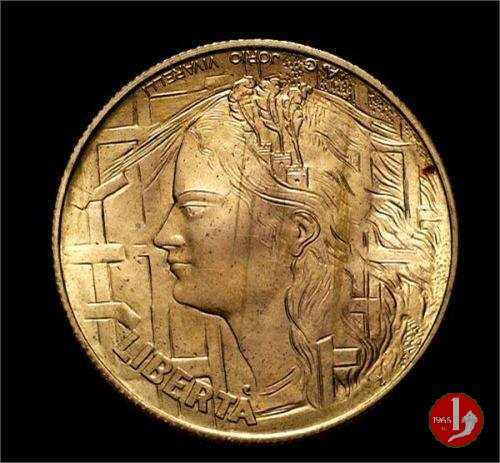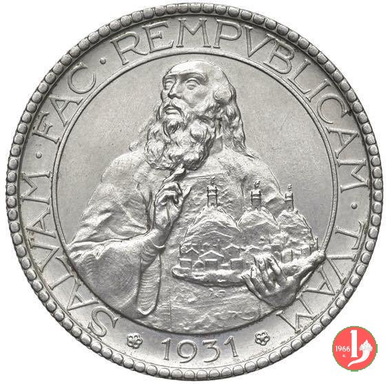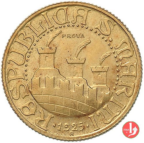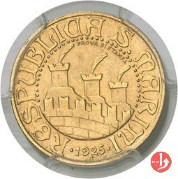 Dritto: Torri piumate all'interno di un cerchio di perline, intorno RESPVBLICA S MARINI. In basso, millesimo ( • 1925 • ) e segno di zecca (R).