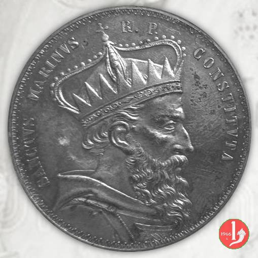 Dritto: Busto a destra del santo coronato, attorno: SANCTUS MARINUS R.P. CONSTITUTA