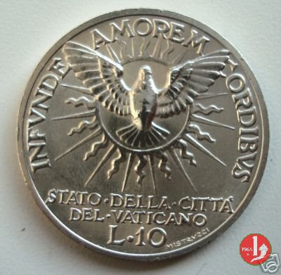 Verso: VENI SANCTE SPIRITUS.Colomba radiante in volo. Al di sotto STATO DELLA CITTA' DEL VATICANO e nominale